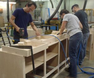 Advanced skills in machine woodworking and hand craftsmanship. Emphasizes advanced design and door and drawer construction, laminate installation.