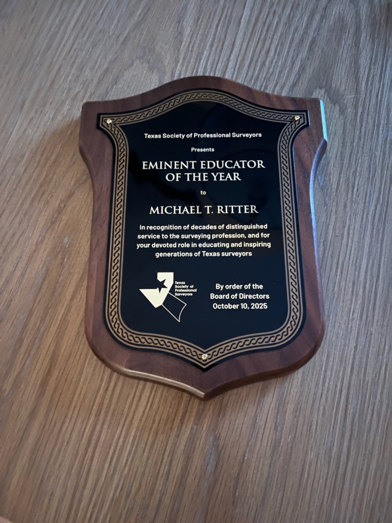 The Texas Society of Professional Surveyors (TSPS), the authoritative voice for land surveyors across the state, recently honored Mike with an award recognizing his spectacular, decades-long commitment to education. This accolade highlights his exceptional achievement: providing 40 years of stellar instruction to the next generation of surveyors.